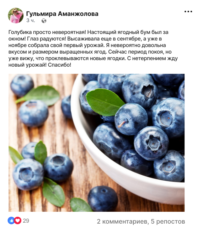 Уже через 2 месяца вы попробуете первые собственноручно выращенные ягодки голубики