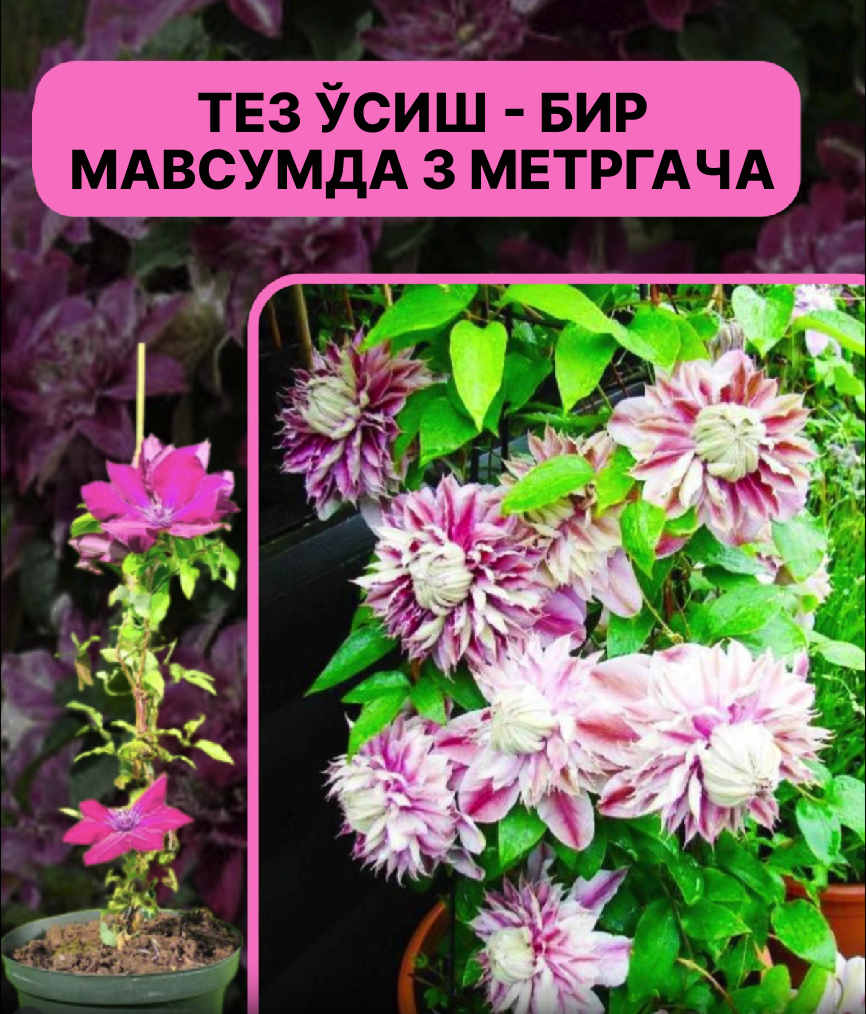 ✅ Мавсумда 3 м гача кучли ўсиш беради. Атиги бир йилдан кейин гуллаб турган равоқ ёки чегара пайдо бўлади.